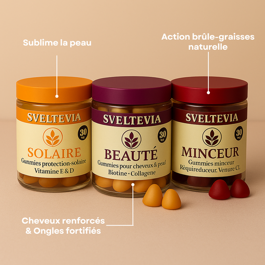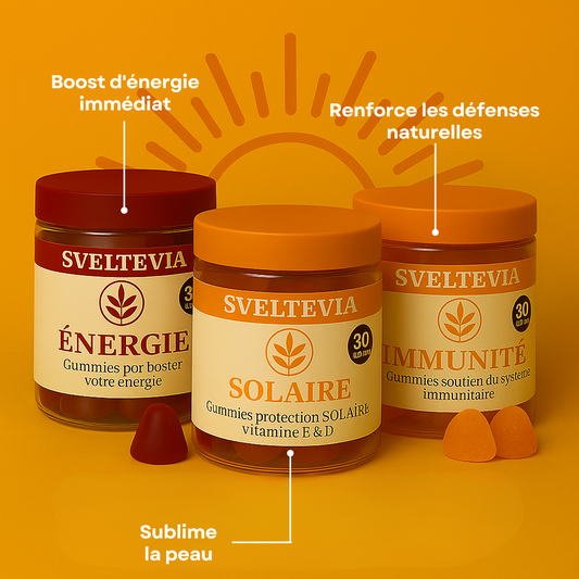 Bienvenue dans la sélection Best Sellers Sveltevia : nos gummies les plus vendus, plébiscités chaque jour par des milliers de clientes et clients satisfaits. Que vous cherchiez à améliorer votre sommeil, booster votre énergie, renforcer votre immunité ou sublimer votre peau, ces produits ont déjà fait leurs preuves.