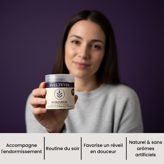 - les Gummies Sommeil, avec mélatonine et plantes apaisantes, pour un endormissement rapide et des nuits profondes,